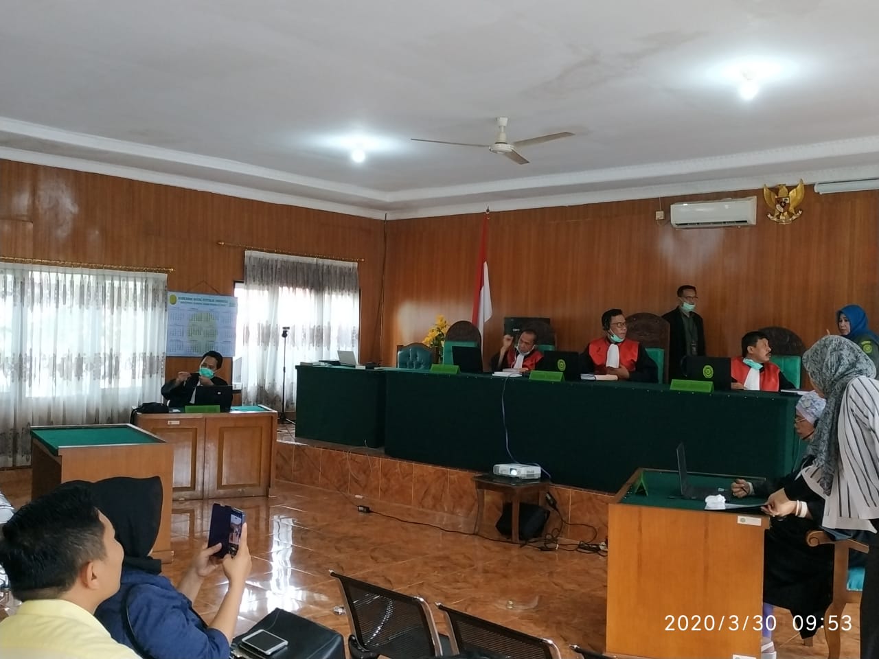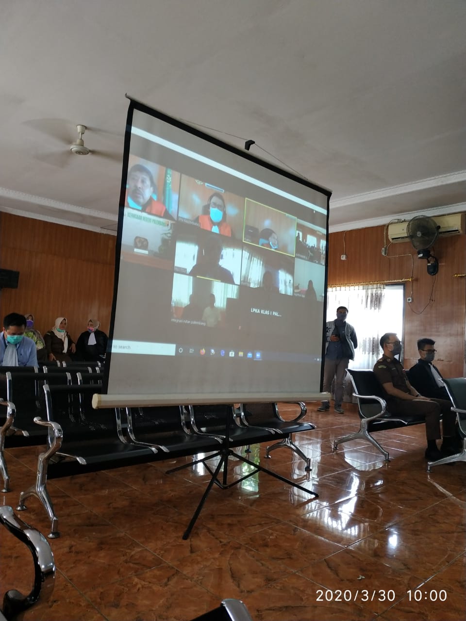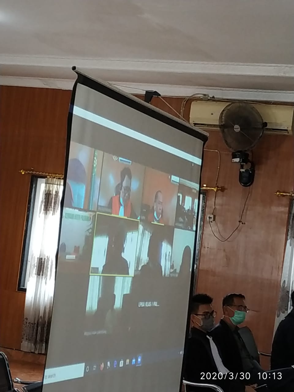 Pada Hari Senin, 30 Maret 2020 Kejaksaan Negeri Musi Banyuasin Bersama Pengadilan Negeri Tipikor Palembang, Lapas Palembang, dan Lapas Perempuan Palembang Melaksanakan Sidang Perkara Pidana Khusus Online sebanyak 3 Perkara Korupsi di Pengadilan Tipikor Palembang.