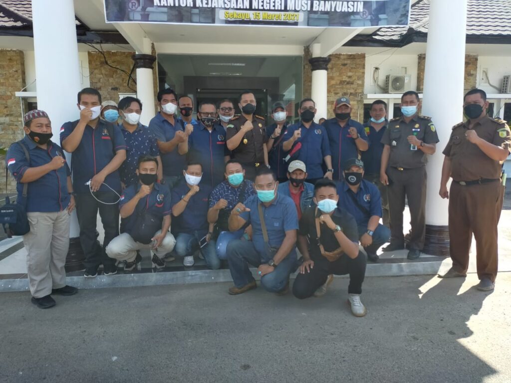 Silaturahmi diterima langsung Kepala Kejaksaan Negeri (Kajari) Musi Banyuasin Marcos MM Simare Mare, SH MHum di dampingi kasi intel Abu nawas SH, untuk PWI Musi Banyuasin langsung di pimpin Ketua PWI Muba, Sekretaris PWI Muba Indra Jaya, Bendahara PWI Muba Iwan Hendrawan, dan 15 Pengurus dan Anggota Kamis 18/03/2021.