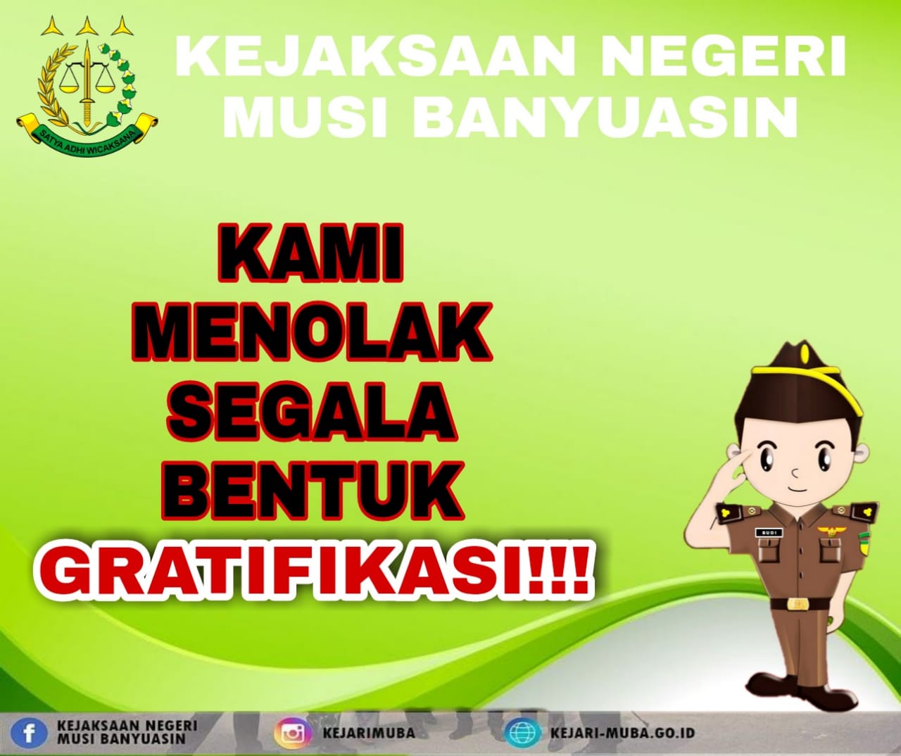 banner gratifikasi ANTI GRATIFIKASI Fadhiel April 22, 2021 Continue Reading Previous PENCANANGAN PEMBANGUNAN ZONA INTEGRITAS KEJAKSAAN NEGERI MUSI BANYUASINNext Pemaparan/Ekspose Badan Pengelola Pajak dan Retribusi Daerah “Kegiatan pendataan, Penertiban dan Penagihan wajib pajak” More Stories 1 min read banner birokrasi Standar Pelayanan Kejaksaan Negeri Musi Banyuasin November 12, 2025 Arya Rf 1 min read banner Berita birokrasi Info KAJARI video Pembangunan Zona Integritas Menuju Wilayah Bebas Korup Tahun 2025 Agustus 7, 2025 Arya Rf 1 min read Berita gratifikasi Info Perkara Jadwal Sidang Sidang Putusan Perkara Tindak Pidana Korupsi Pengadaan Aplikasi SANTAN (Sistem Aplikasi Nomor Tanah Desa) Dinas Pemberdayaan Masyarakat Desa Musi Banyuasin dan Tindak Pidana Korupsi berupa Gratifikasi & Tindak Pidana Pencucian Uang yg dilakukan Oleh sdr. RC Selaku Kepala Dinas Pemberdayaan Masyarakat Desa Kab. Musi Banyuasin sejak Tahun 2019 April 28, 2025 Arya Rf