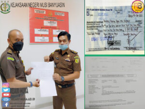 Pada hari kamis tanggal 22 April 2021 uang hasil lelang semester I Kejaksaan Negeri Musi Banyuasin sebesar Rp. 2.397.582.266,00- (dua milyar tiga ratus sembilan puluh tujuh juta lima ratus delapan puluh dua ribu dua ratus enam puluh enam Rupiah) telah di setor ke kas Negara melalui rekening penampungan Bank BRI yang dilaksanakan oleh bendahara pendapatan Kejaksaan Negeri Musi Banyuasin saudara Tri Juliasnyah, SH.