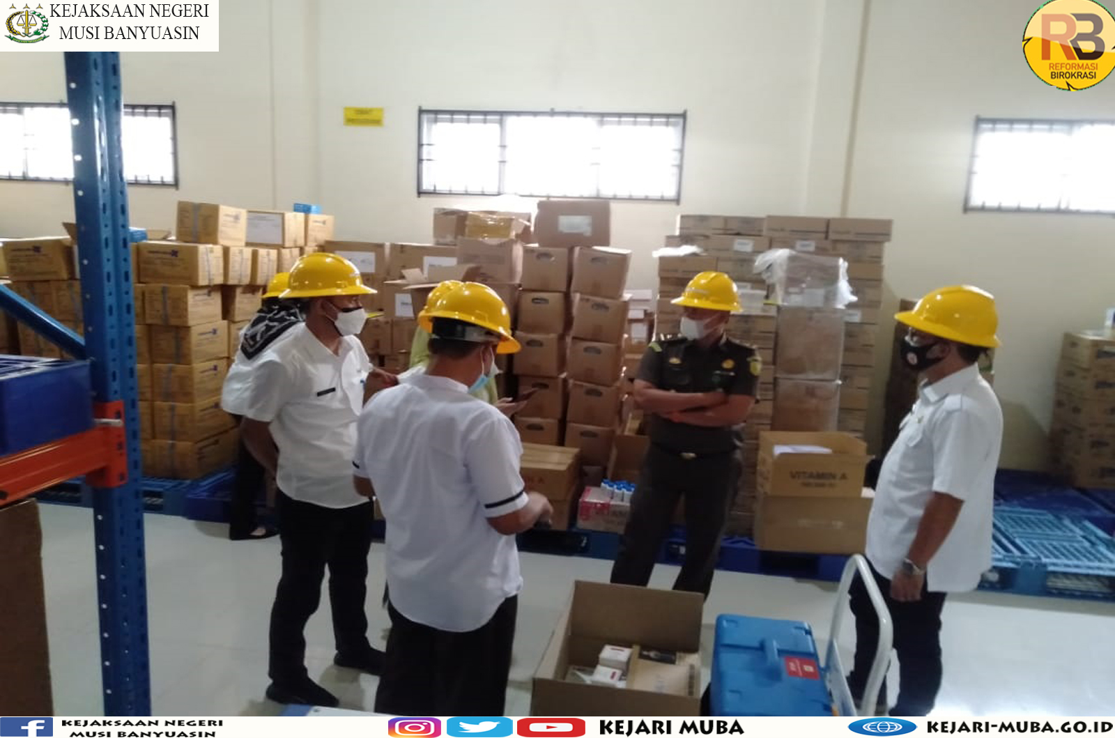 Guna memastikan ketersedian vaksin dan obat-obatan serta oksigen yang ada di Kabupten Musi Banyuasin (Muba) tampak Kajari Muba Marcos MM Simaremare, SH.M.Hum diwakili kasi Intel Kejari Muba Abu Nawas SH antusias dan intens memperhatikan dan melakukan pengecekan terkait kelengkapan gudang farmasi Dinkes Muba.