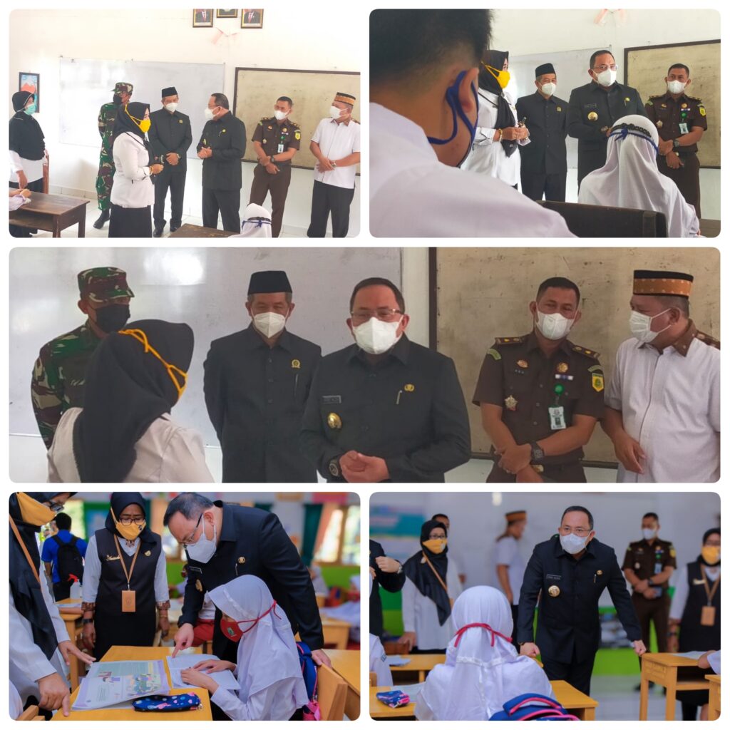 Senin 23 Agustus 2021, Kajari Muba Marcos MM Simaremare,S.H,M.Hum diwakili oleh Kasi Intel Kejari Muba Abu Nawas SH, bersama Wakil Ketua DPRD Muba H Rabik SH, Dandim 0401 Muba Letkol Arh Faris Kurniawan SST MT, Kapolres Muba AKBP Alamsyah Pelupessy SH SIk MSi, Kepala Dinas Pendidikan dan Kebudayaan Musni Wijaya SSos MSi serta Kepala Dinas Kesehatan Kabupaten Muba dr Azmi Dariusmansyah MARS mendampingi Bupati Dr Dodi Reza Alex Noerdin Lic Econ MBA melakukan peninjauan pelaksanaan PTM (pembelajaran Tatap Muka) secara terbatas ke sekolah SD-SMP diantaranya SMP Negeri 1 Sekayu dan SD Negeri 3 Sekayu.