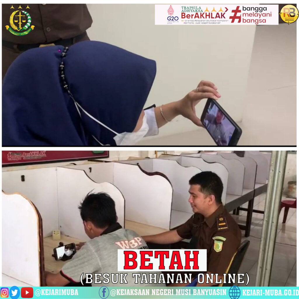 Kejaksaan Negeri Musi Banyuasin (Kejari Muba) melalui bidang Seksi Tindak Pidana Umum (Pidum) telah meluncurkan Program BETAH (Besuk Tahanan Secara Online), dimana dilatarbelakangi masih adanya pandemi covid19 maka ditiadakan besukan untuk pihak keluarga tersangka / terdakwa untuk bertemu tatap muka secara langsung. Oleh karena itu dengan berdasarkan persoalan-persoalan tersebut, maka Kejari Muba berinovasi bagaimana agar para tersangka / terdakwa tersebut dapat bertemu dengan keluarga mereka melalui program BETAH (Besuk Tahanan Online).