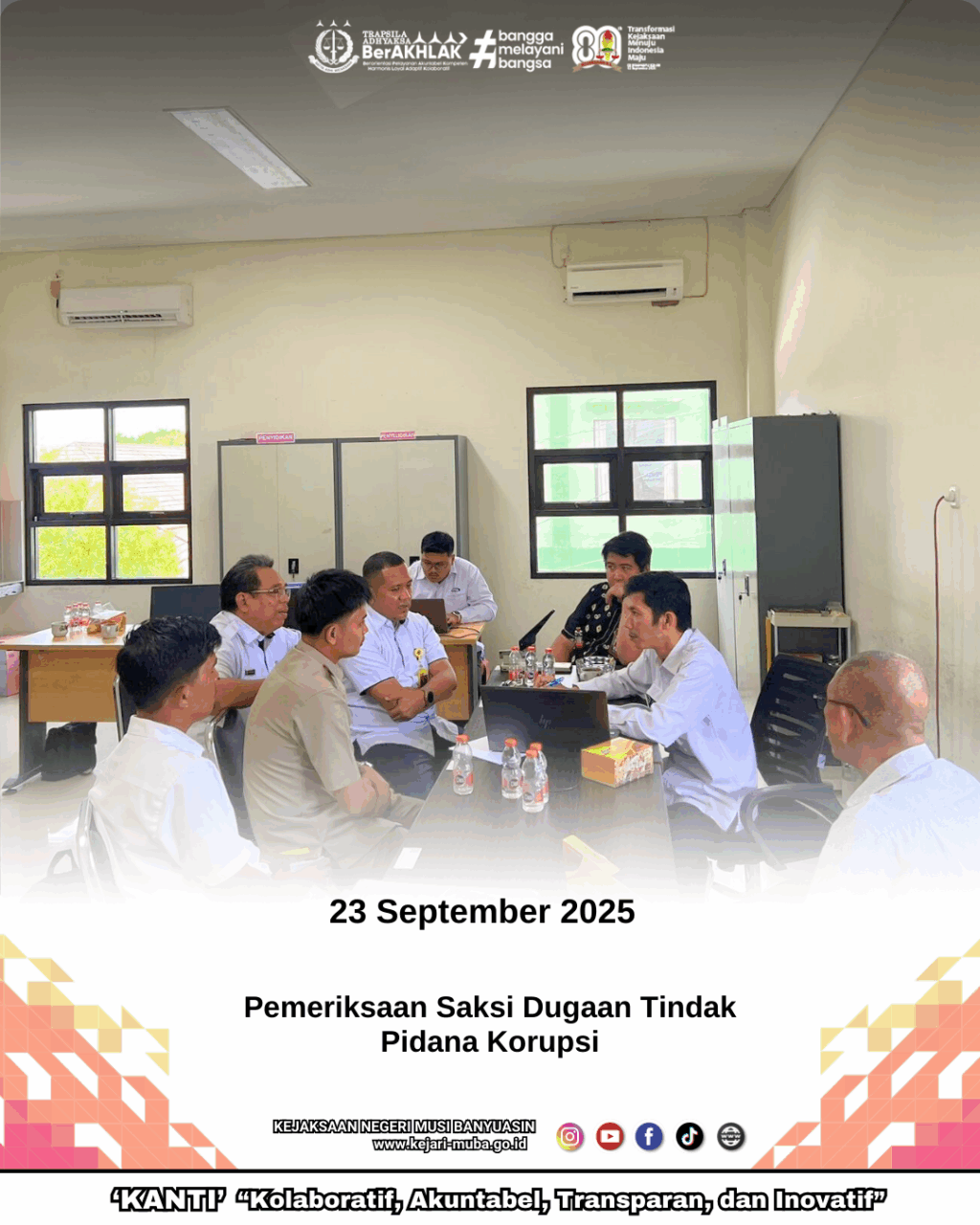 Selasa, 23 September 2025, Tim Badan pengawasan Keuangan dan Pembangunan (BPKP) Palembang melakukan pemeriksaan saksi Dugaan Tindak Pidana Korupsi Pada Perkebunan PT. Sentosa Mulia Bahagia di luar HGU di Wilayah Kabupaten Musi Banyuasin yang merugikan keuangan negara. Pemeriksaan dilakukan di Ruang Tindak Pidana Khusus Kejaksaan Negeri Musi Banyuasin