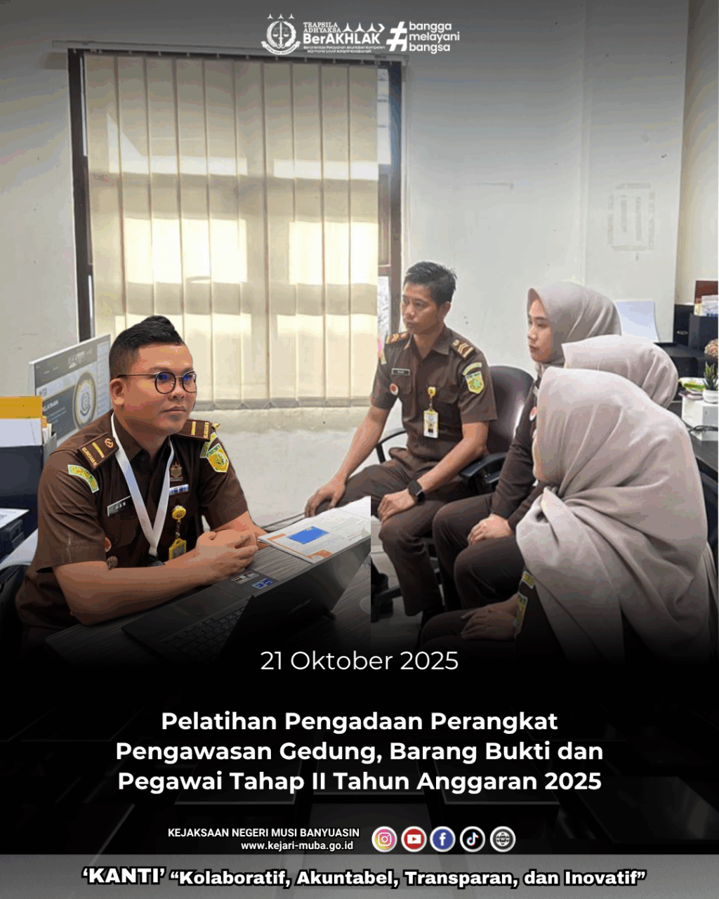 Pelatihan Pengadaan Perangkat Pengawasan Gedung, Barang Bukti danPegawai Tahap II Tahun Anggaran 2025, Yang dikuti secara langsung Oleh Bpk Handoyono, S.H Kaur Perlengkapan dan melalui zoom meeting yang Di Ikuti Oleh Asisti Muth Ma’innah, S. SI, Siti Fatimah Az – Zahara Mukhlis Staff Pembinaan dan Utami Ulansari, A. Md, Rian Hidayat Staff PAPBB