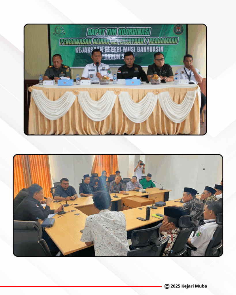 Rabu, 22 Oktober 2025, Kejaksaan Negeri Musi Banyuasin selaku Ketua Tim Pengawasan Aliran Kepercayaan dan Aliran Keagamaan dalam Masyarakat (PAKEM) Kabupaten Musi Banyuasin melaksanakan rapat koordinasi bersama instansi terkait bertempat di ruang Aula kantor Kecamatan Sekayu.