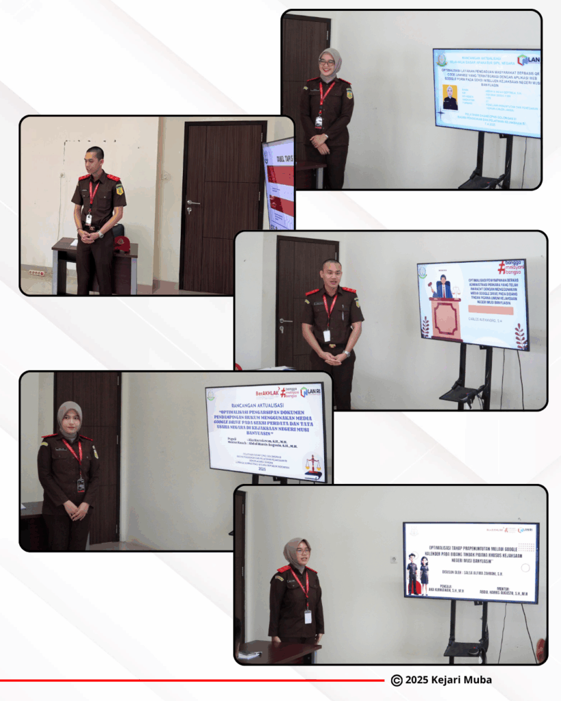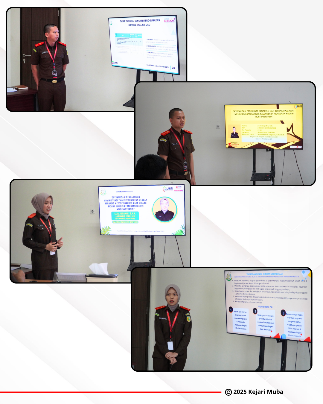 Bahwa dalam kegiatan ini para peserta CPNS menyampaikan rancangan aktualisasi yang berfokus pada upaya peningkatan kinerja, inovasi pelayanan publik, serta kontribusi terhadap lingkungan kerja di Kejaksaan Negeri Musi Banyuasin. Melalui seminar ini, peserta memperoleh masukan dan evaluasi dari Penguji dan Mentor agar rancangan aktualisasi yang disusun dapat diimplementasikan secara nyata dan berdampak positif bagi Kejaksaan Negeri Musi Banyuasin
