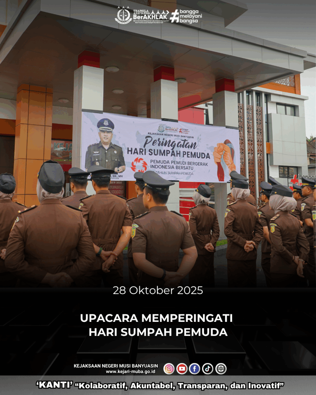 Selasa, 28 Oktober 2025, bertempat di Lapangan Kantor Kejaksaan Negeri Musi Banyuasin, telah dilaksanakan Upacara Memperingati Hari Sumpah Pemuda ke-97 Tahun 2025