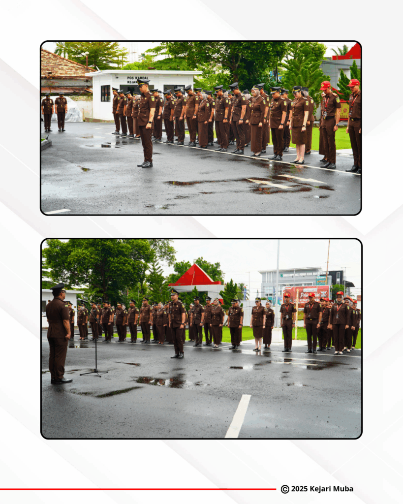 Bahwa dalam kegiatan ini Kepala Kejaksaan Negeri Musi Banyuasin Bapak Aka Kurniawan, S.H.,M.H. bertindak sebagai Inspektur Upacara. Kegiatan ini dihadiri oleh Para Kasi dan Kasubagbin serta seluruh Pegawai Kejaksaan Negeri Musi Banyuasin