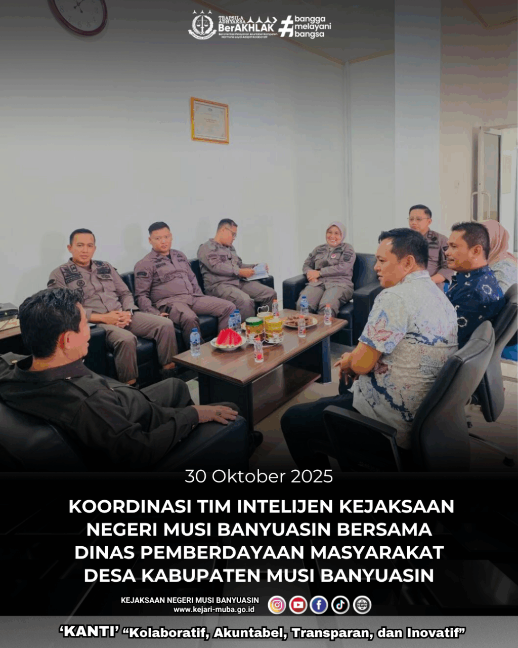 Kamis, 30 Oktober 2025, bertempat di Kantor Dinas Pemberdayaan Masyarakat Kabupaten Musi Banyuasin telah dilaksanakan koordinasi Bersama Tim Intelijen Kejaksaan Negeri Musi Banyuasin.