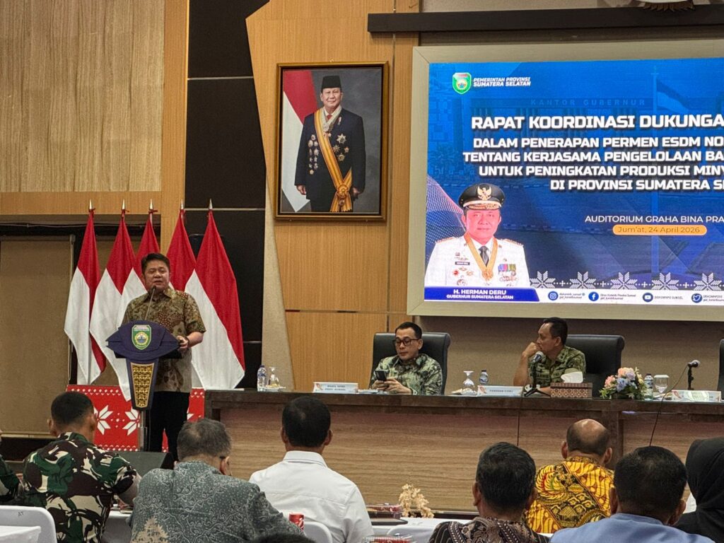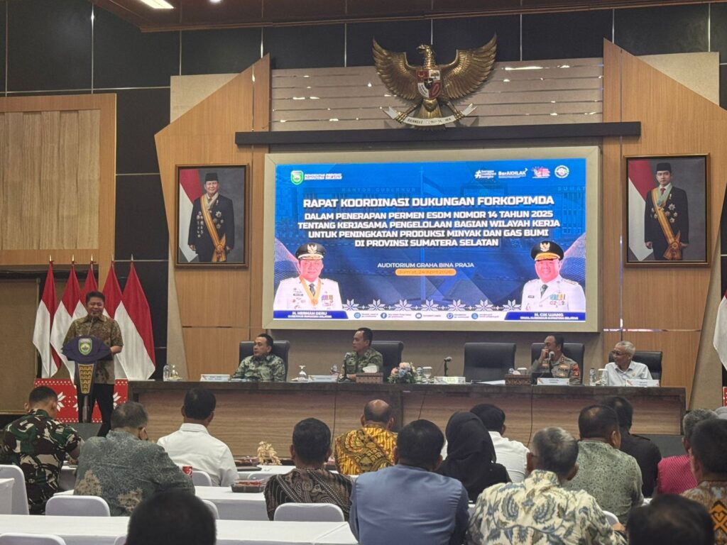 Jumat 24 April 2026 Kepala Kejaksaan Negeri Musi Banyuasin diwakili oleh Kepala Seksi Intelijen Bapak Abdul Harris Augusto S.H., M.H Menghadiri kegiatan Rapat Kordinasi Dukungan Forkopimda Dalam Penerapan Permen ESDM Nomor 14 Tahun 2025 Tentang Kerjasama Pengelolaan Bagian Wilayah Kerja Untuk Peningkatan Produksi Minyak Dan Gas Bumi di Auditorium Bina Praja Setda Sumsel.